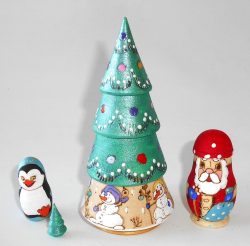Xmas Tree with 3D toys XLarge 5-set Babushka Babushka Matryoshka nesting Doll Babooshki Babushkas