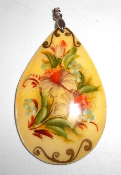 Pendant fancy oval: Roses on light yellow Babushka Matryoshka Babooshki Babushkas