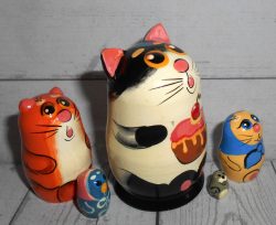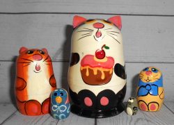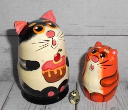 MINI Birthday Cat with cake 5-set Babushka TINY Babushka Matryoshka nesting Doll  Babooshki Babushkas