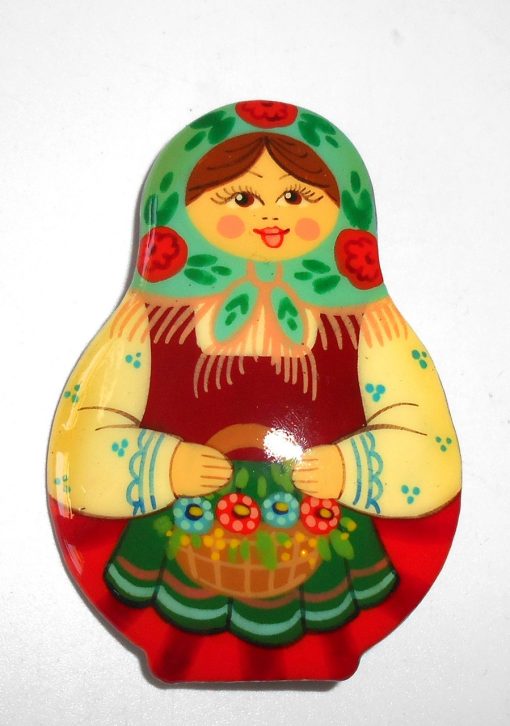Brooch: Galya green scarf Babushka Matryoshka Babooshki Babushkas