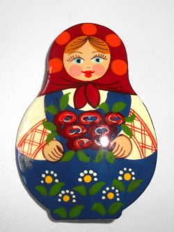 Brooch: Galya with bunch of flowers Babushka Matryoshka Babooshki Babushkas