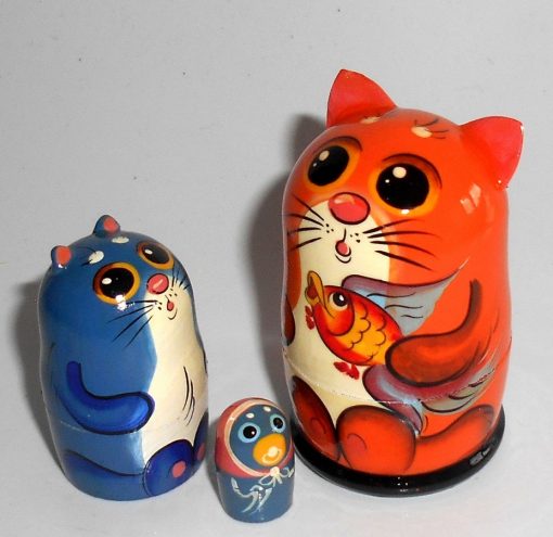 MINI Cat ginger with gold fish mini 5-set Babushka TINY