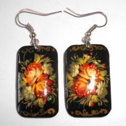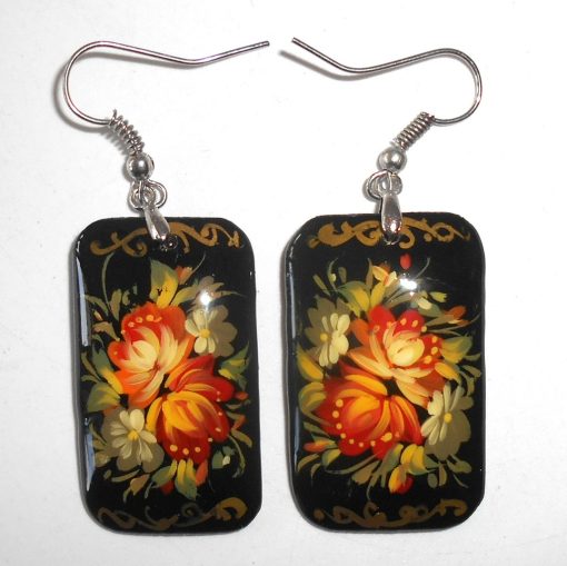 Earrings rectangle shape: ‘Roses’ on black Babushka Matryoshka Babooshki Babushkas