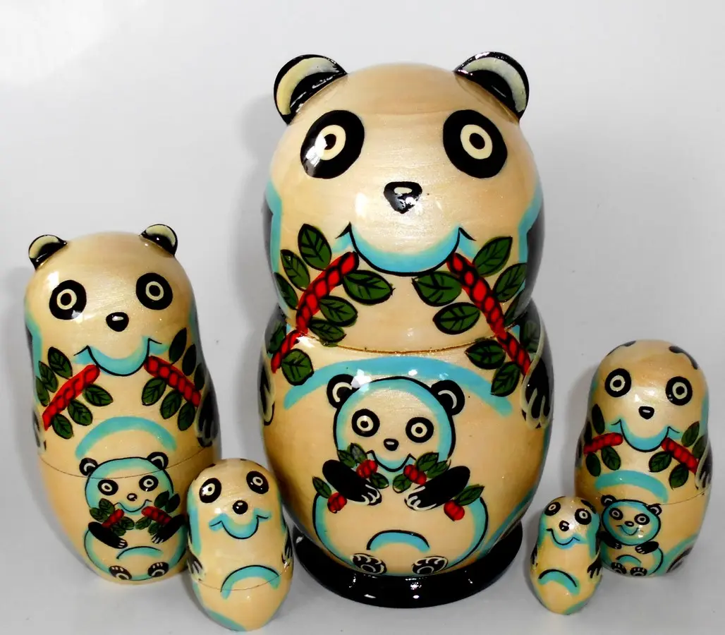 Funny Panda with bamboo 5-set Babushka Matryoshka nesting Doll Babooshki Babushkas