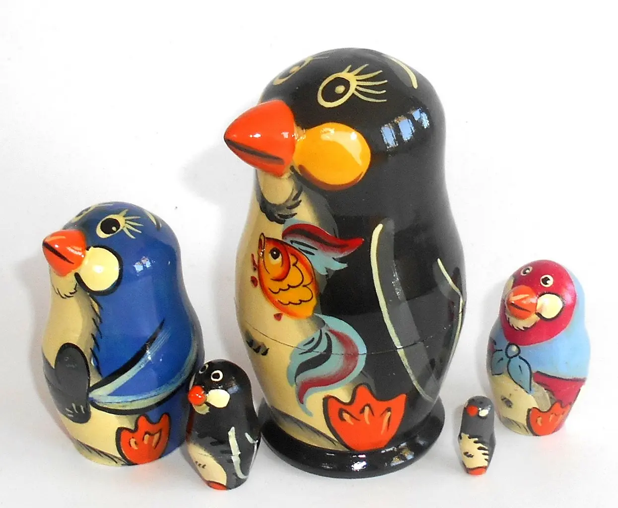Funny Penguin with fish II Babushka Matryoshka nesting Doll Babooshki Babushkas