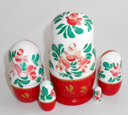 Rooster / Chicken Girl in white and red dress 5-set Babushka Matryoshka nesting Doll Babooshki Babushkas