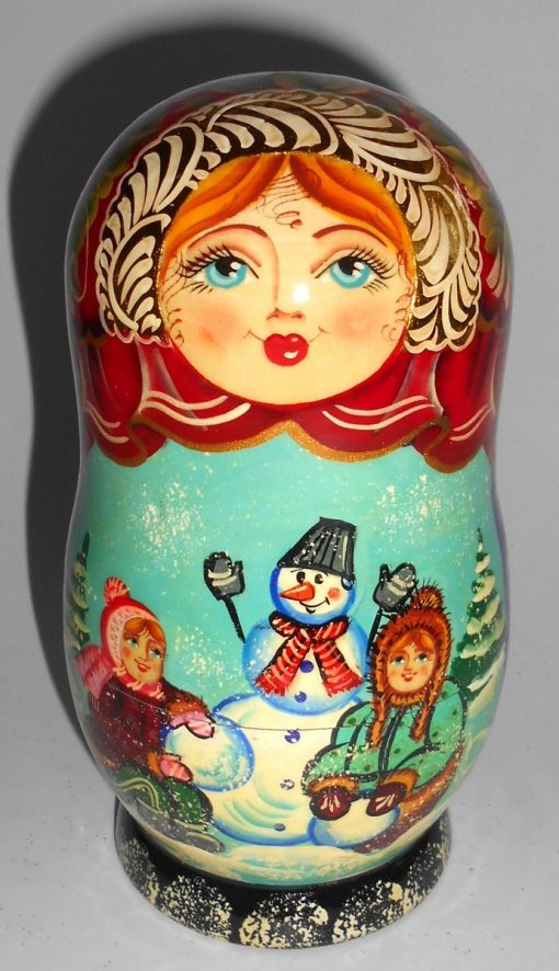 Girl with Winter Scene korobnick MEDIUM Babushka Matryoshka nesting Doll Babooshki Babushkas