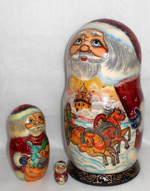 Huge Santa with Winter Troyka 10-set Babushka Babushka Matryoshka nesting Doll Babooshki Babushkas
