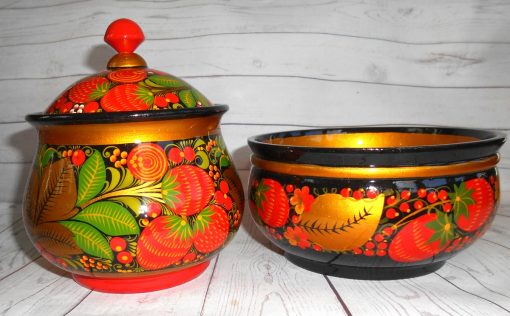 Khokhloma Large Sugar & Candy Bowl with 2 spoons IV