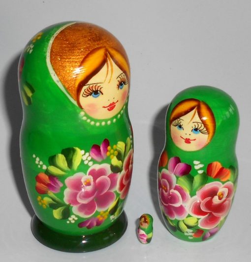 Kira in green with roses 5-set Babushka Matryoshka nesting Doll Babooshki Babushkas