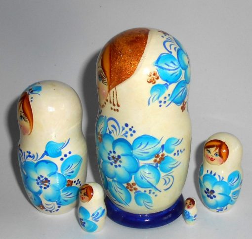 Kira in white and blue flowers 5-set Babushka Matryoshka nesting Doll  Babooshki Babushkas