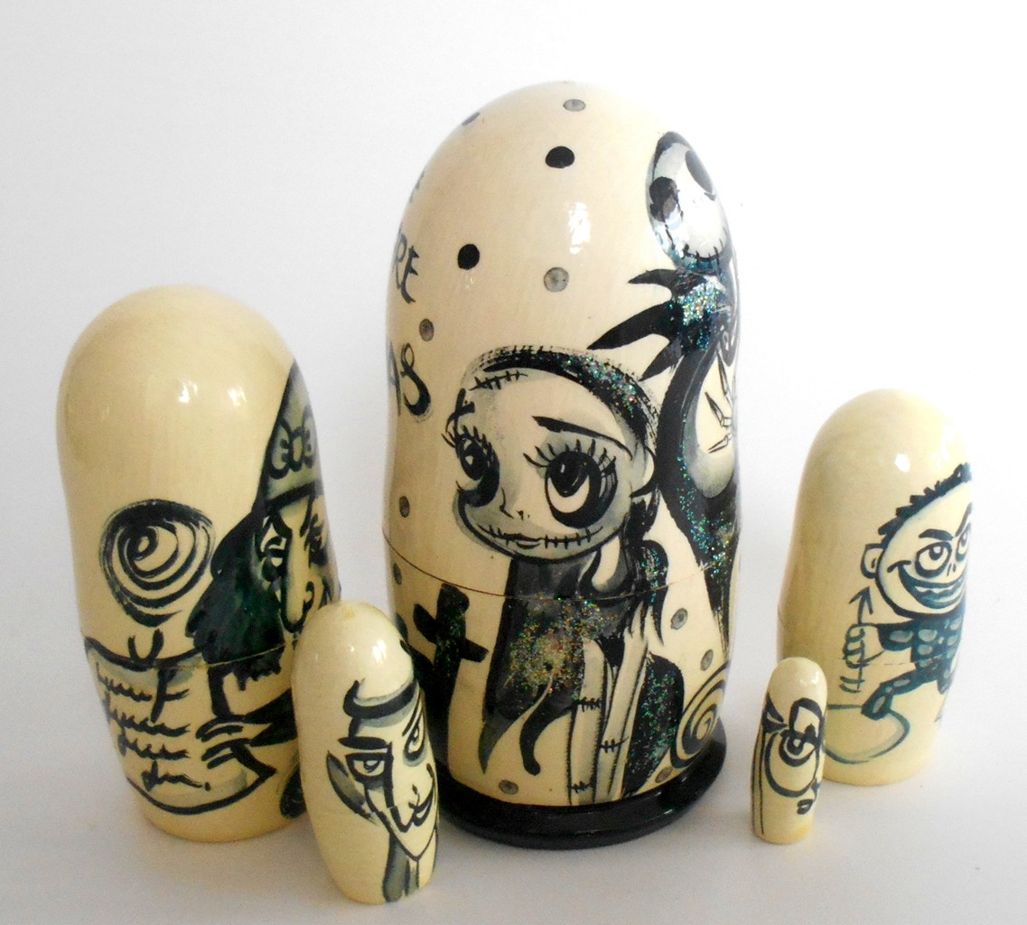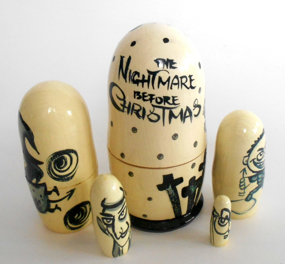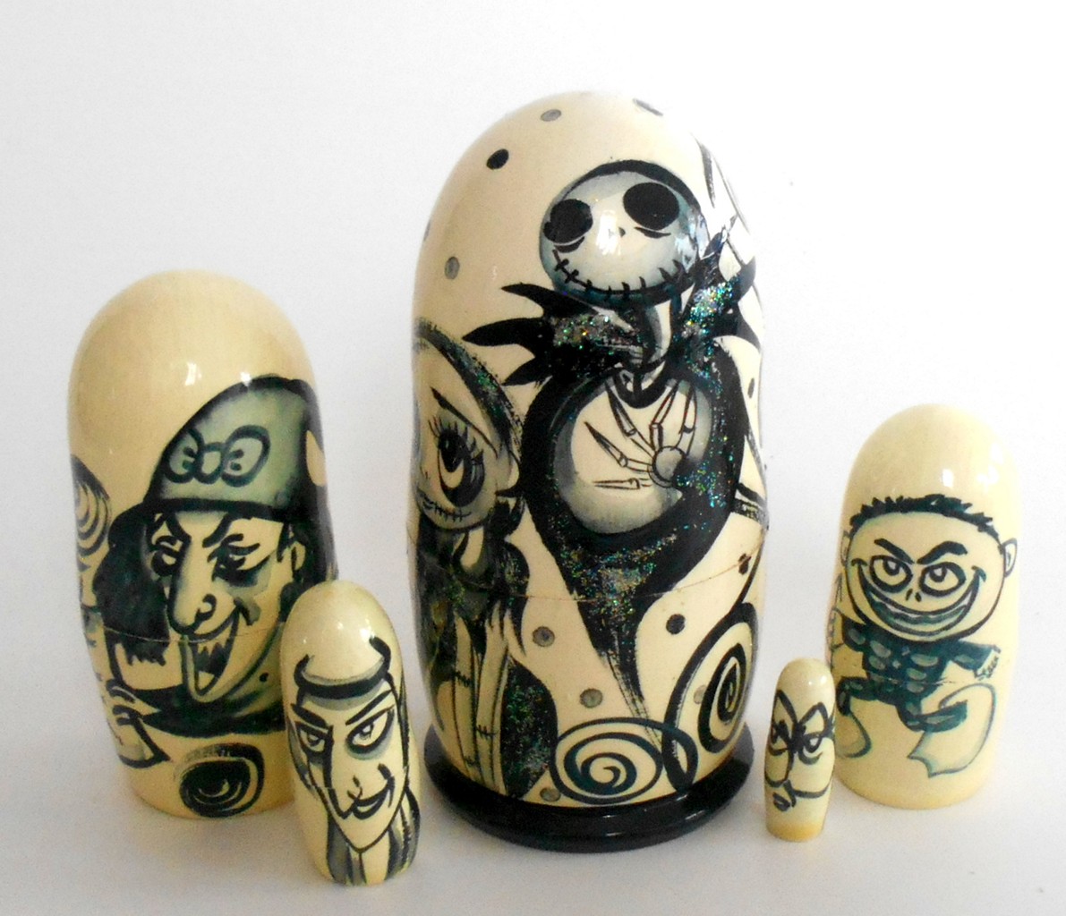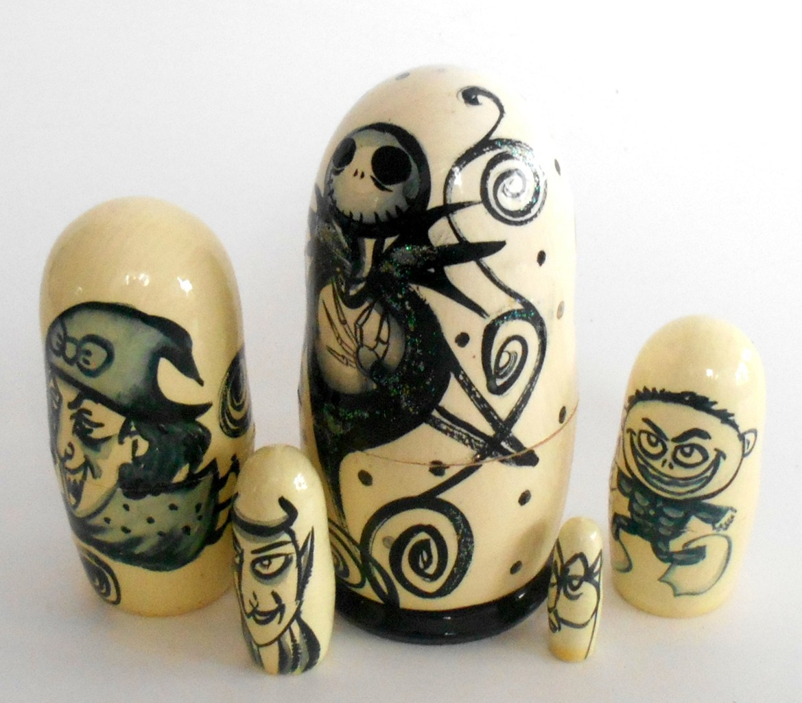 Nightmare before Christmas on white small Babushka Matryoshka nesting Doll Babooshki Babushkas
