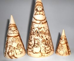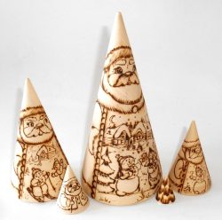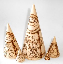 Santa & Snowmen wood-burn conical Babushka Babushka Matryoshka nesting Doll Babooshki Babushkas raw plain unpainted Unfinished Montessori blank