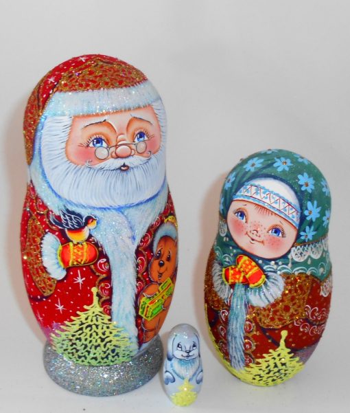 Santa with teddy bear sparkling babushka Babushka Matryoshka nesting Doll Babooshki Babushkas