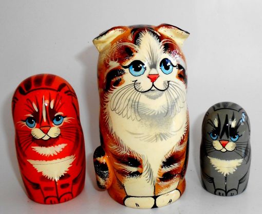 Sweet Tabby Cat family with 3D ears and tail Babushka Matryoshka nesting Doll Babooshki Babushkas