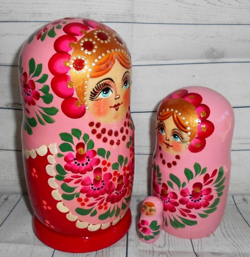 Mila in pink and red Babushka Matryoshka nesting Doll Babooshki Babushkas