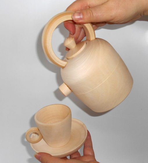 Tea party set Japanese style for 4 people raw plain unpainted Unfinished Montessori blank