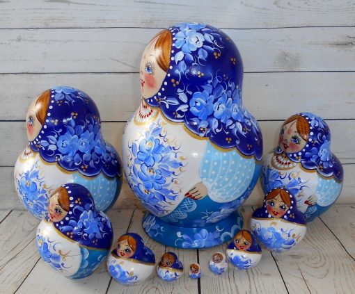 Vera in blue and white 10-set Babushka Matryoshka nesting Doll  Babooshki Babushkas