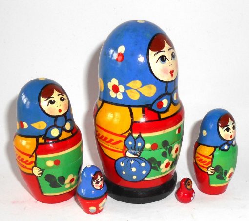 Village 5-set blue scarf green apron Babushka Matryoshka nesting Doll Babooshki Babushkas Classic Village Traditional