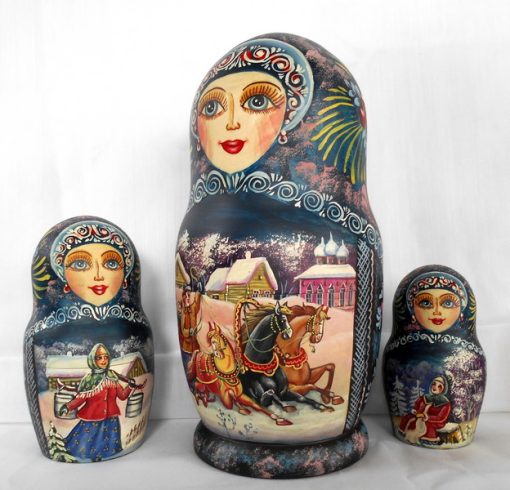 Winter Troyka huge 7-set Babushka Matryoshka nesting Doll Babooshki Babushkas