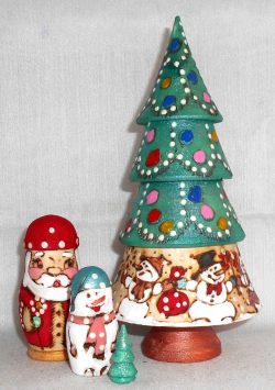 Xmas Tree 4-set Babushka woody Babushka Matryoshka nesting Doll Babooshki Babushkas
